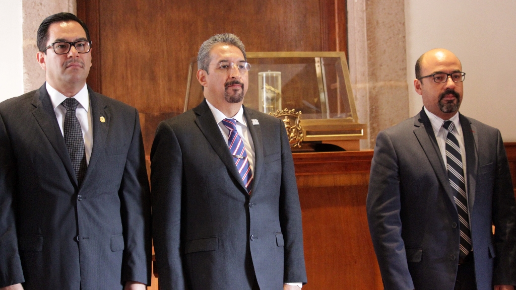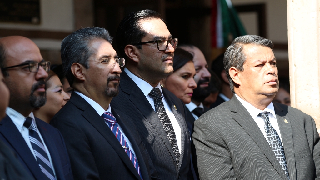 Posteriormente, el presídium conformado también por el coordinador general de Planeación Educativa de la SEE, Iván Fernando Barrales Alcántara, quien acudió con la representación del gobernador Silvano Aureoles Conejo; el secretario general del Sindicato de Profesores de la Universidad Michoacana, Gaudencio Anaya Sánchez; y el regente del Colegio Primitivo y Nacional de San Nicolás de Hidalgo, Aldo Ulises Olmedo Castillo, se trasladó a la Sala Melchor Ocampo en donde se encuentra resguardado el corazón del prócer mexicano, para montar una guardia de honor.
