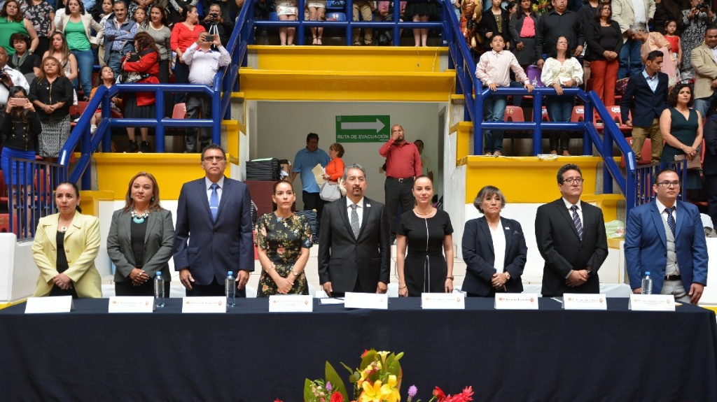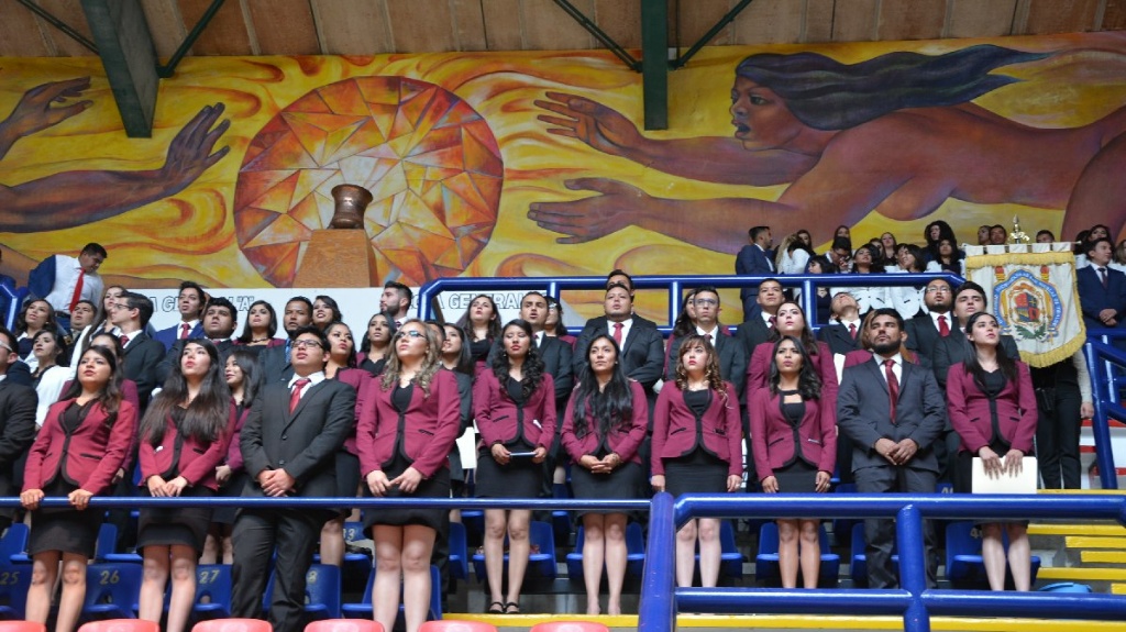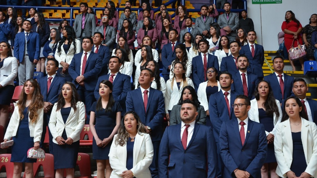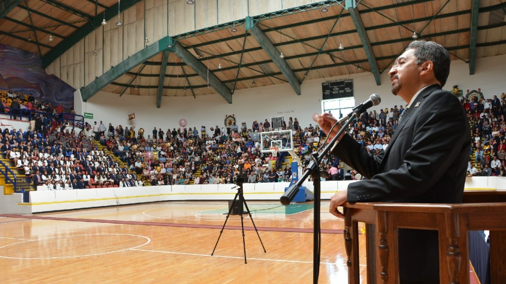 Reunidos en el Auditorio de Usos Múltiples de la Casa de Hidalgo, padres de familia, docentes y alumnos de la generación 2013-2018, escucharon el llamado del rector para realizar un trabajo excepcional y poner muy en alto el nombre de su Universidad a donde quiera que vayan.
