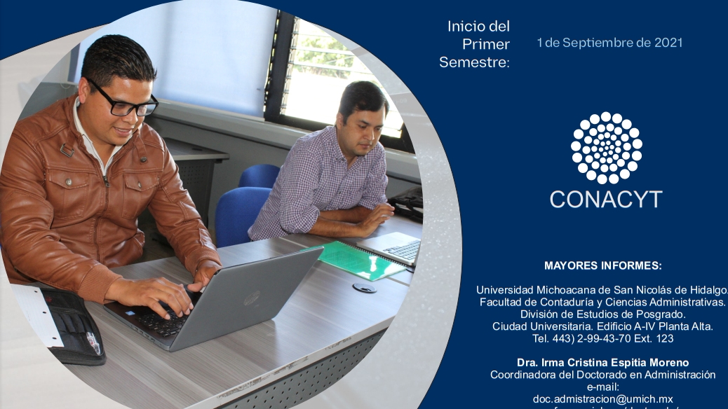 Convocatoria al Doctorado en Administración de la Facultad de Contaduría y Ciencias Administrativas de la Universidad Michoacana de San Nicolás de Hidalgo, generación 2021-2025