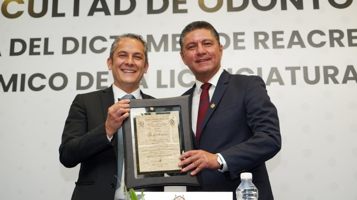 En el marco del LXVIII aniversario de la fundación de la Facultad de Odontología de la Universidad Michoacana de San Nicolás de Hidalgo, el presidente del Consejo Nacional de Educación de Odontología A. C. (CONAEDO), Carlos Carmona Zetina, entregó al rector Raúl Cárdenas Navarro, la constancia de reacreditación.