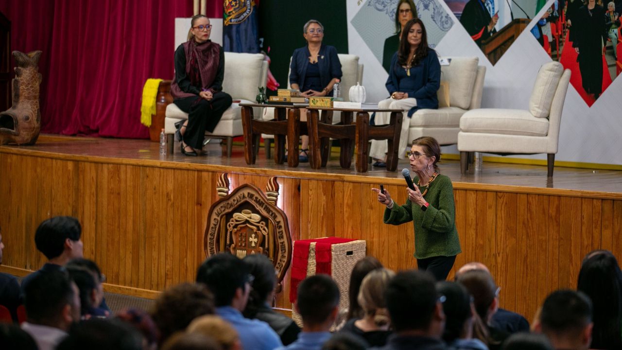 La profesora emérita de la Facultad de Ciencias de la Universidad Nacional Autónoma de México (UNAM), Annie Pardo, abordó con los jóvenes nicolaitas sus líneas de investigación sobre la fibrosis pulmonar, una enfermedad de gran relevancia en el contexto del envejecimiento poblacional mundial.
